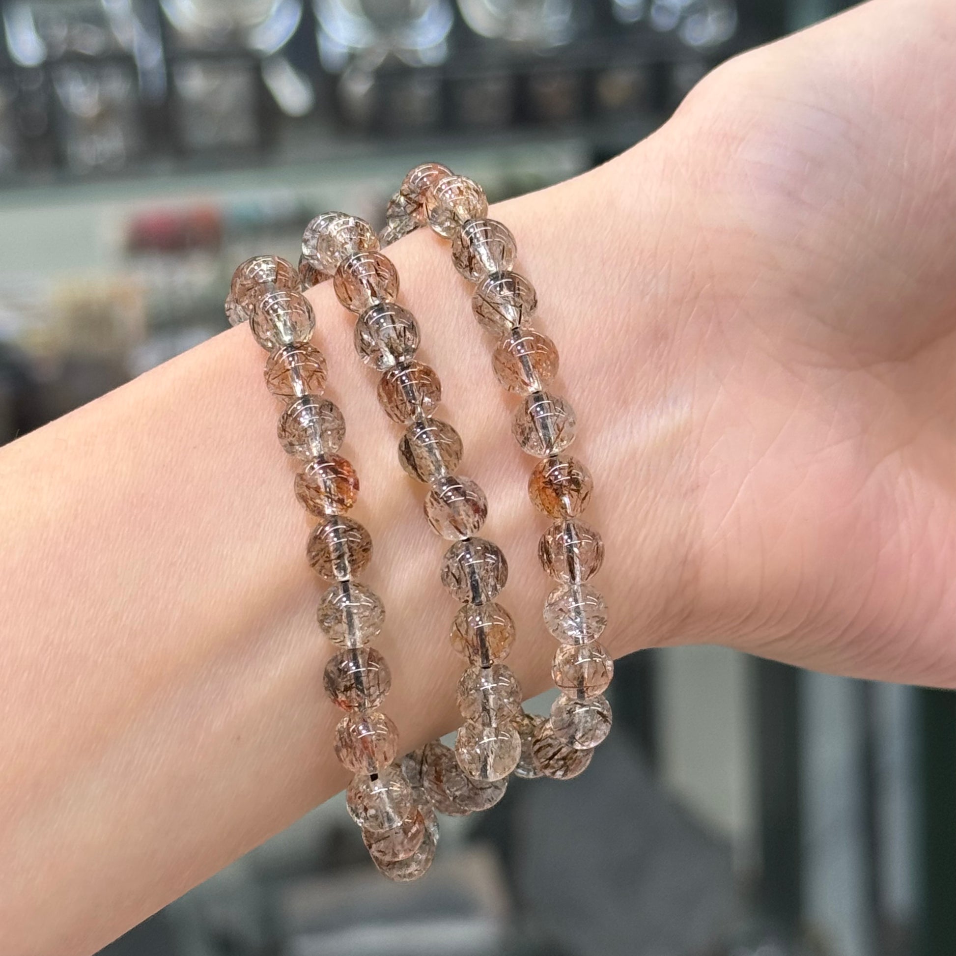 Bracelet Material: Black Gold Super Seven Quartz (with Copper, Silver & Black Rutile Inclusions + Rainbow Flash)