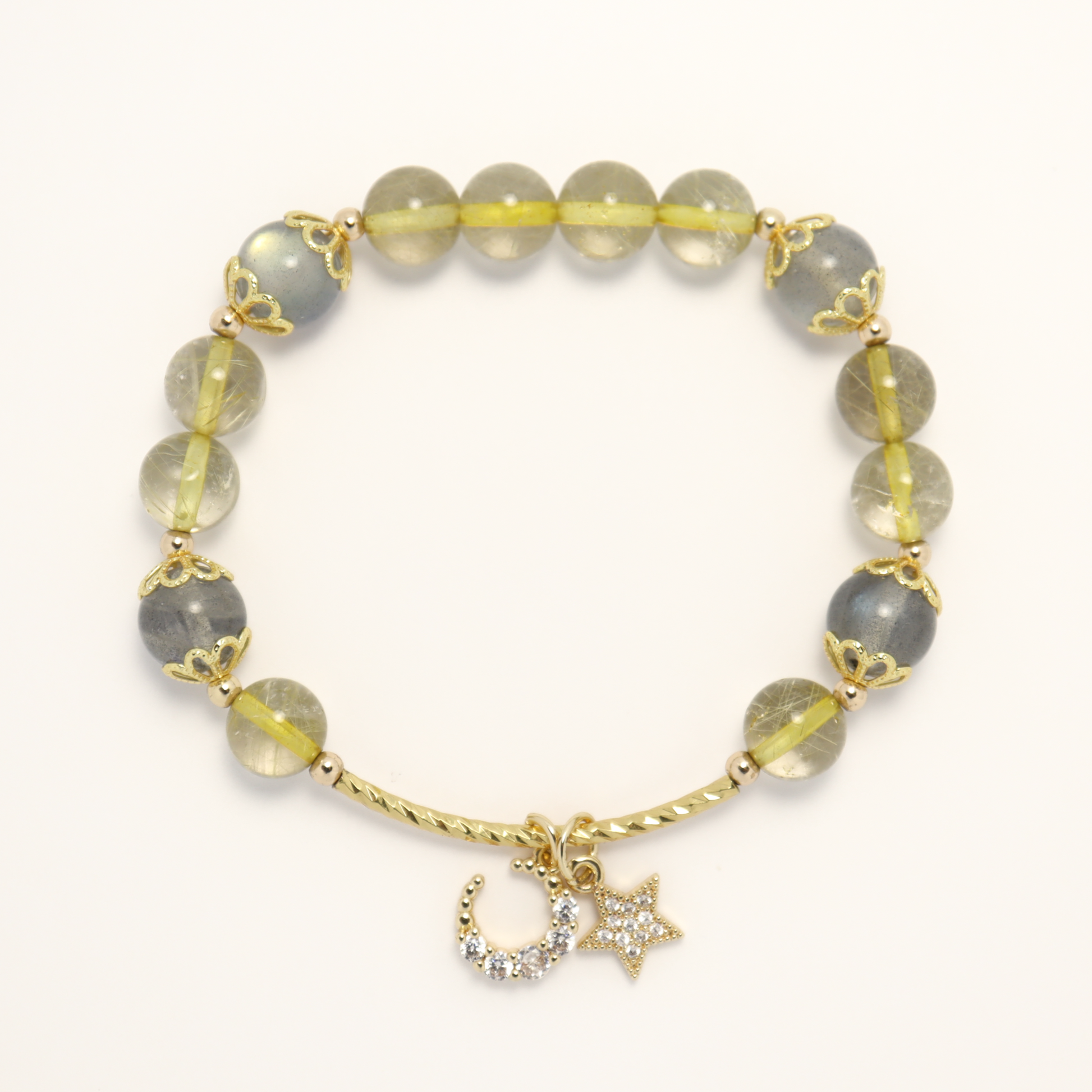 Golden Faith - Rutilated Quartz Crystal & Black Moonstone Bracelet