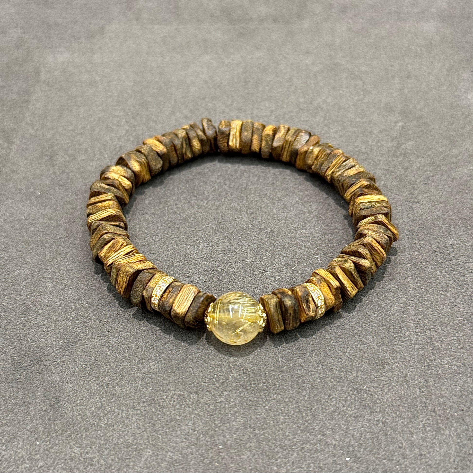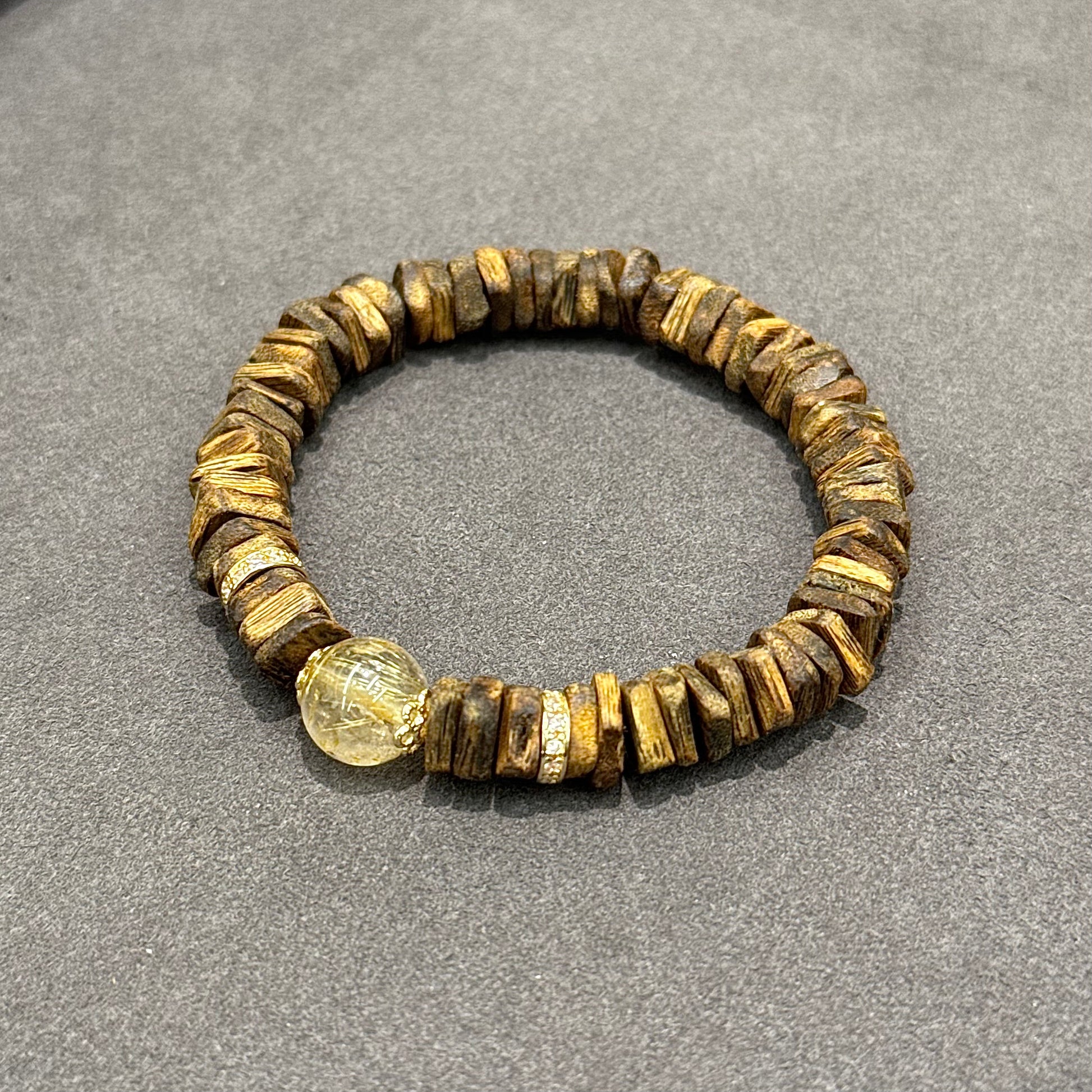 - Bracelet Material: Agarwood, Golden Rutilated Quartz, S925 Silver Accents