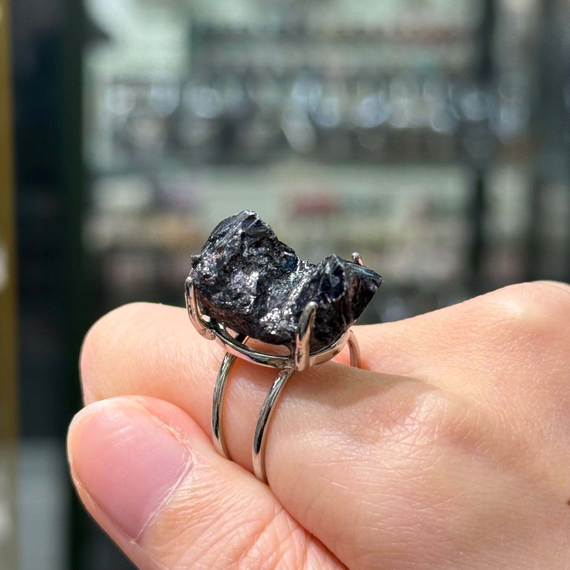 Black Tourmaline · Adjustable Band Ring - Kitten or Whale?