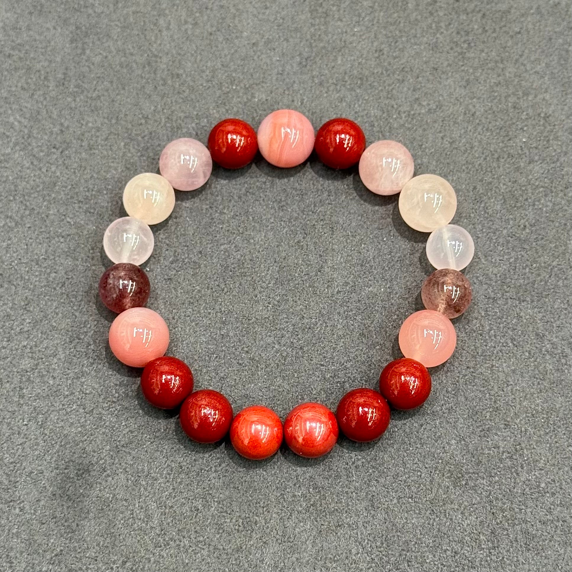 Infused with the warm hues of cinnabar, pink agate, strawberry quartz, and rose quartz, this Fire Element bracelet radiates vibrant energy and emotional awakening. It’s crafted for those seeking passion, love, and the courage to express their true spirit.