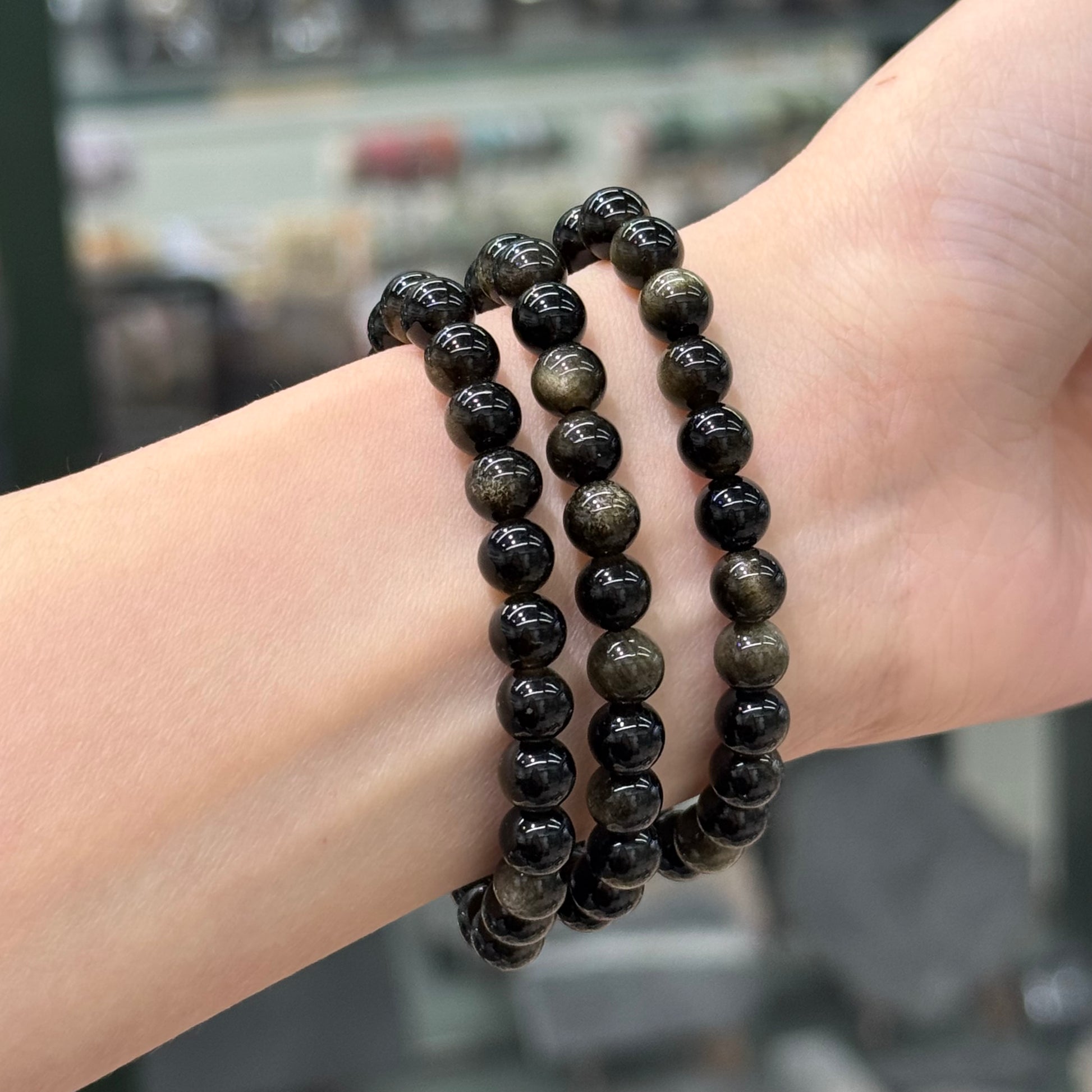 Bracelet Material: Golden Obsidian (Round-Cut, Rare “Golden Ray” Streak)