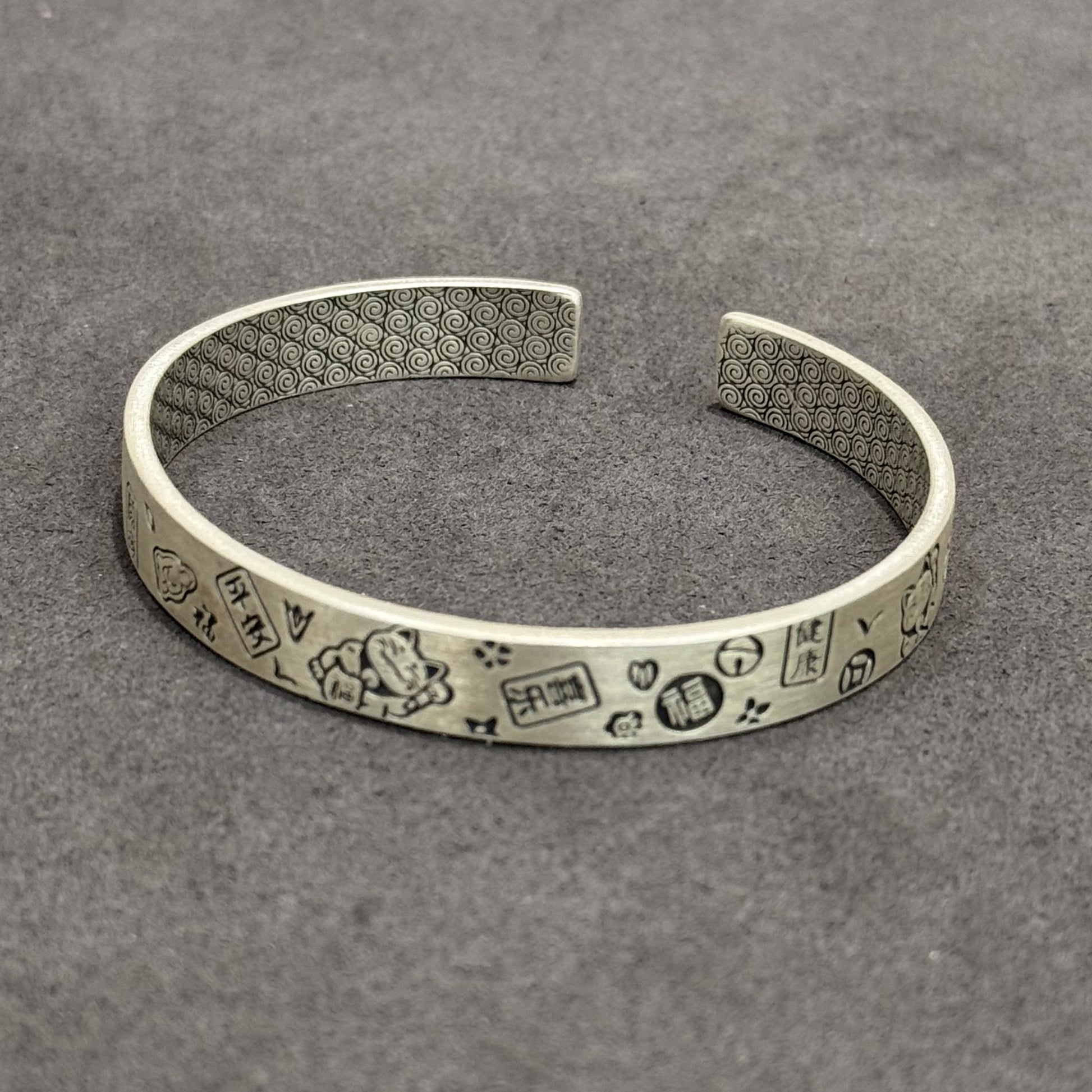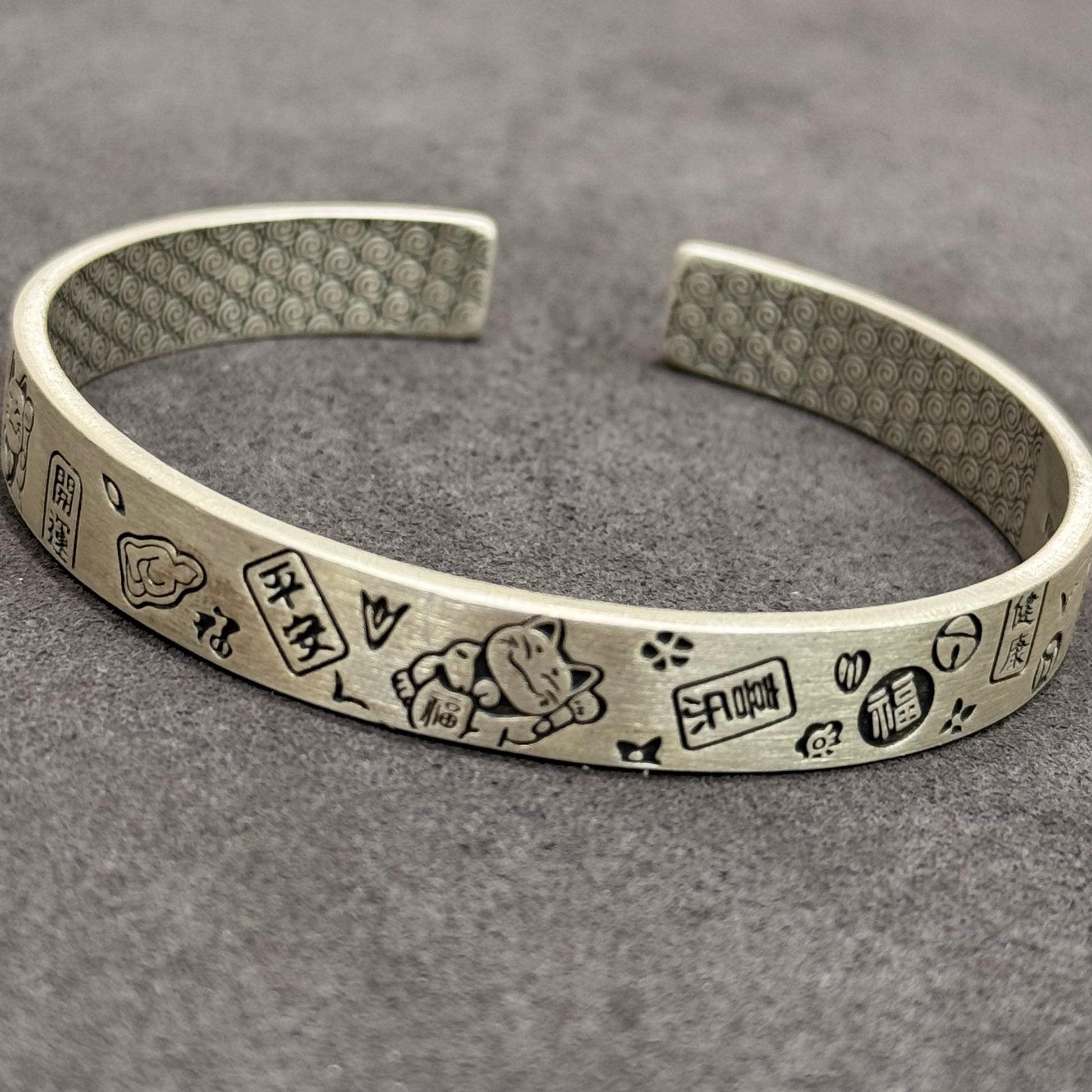 With a charming design featuring the beloved Fortune Cat, this open silver bangle invites good fortune, joy, and prosperity into your life. Delicate auspicious motifs and graceful curves make it a meaningful piece for daily wear or gifting—an elegant prayer for ongoing blessings and lucky encounters.