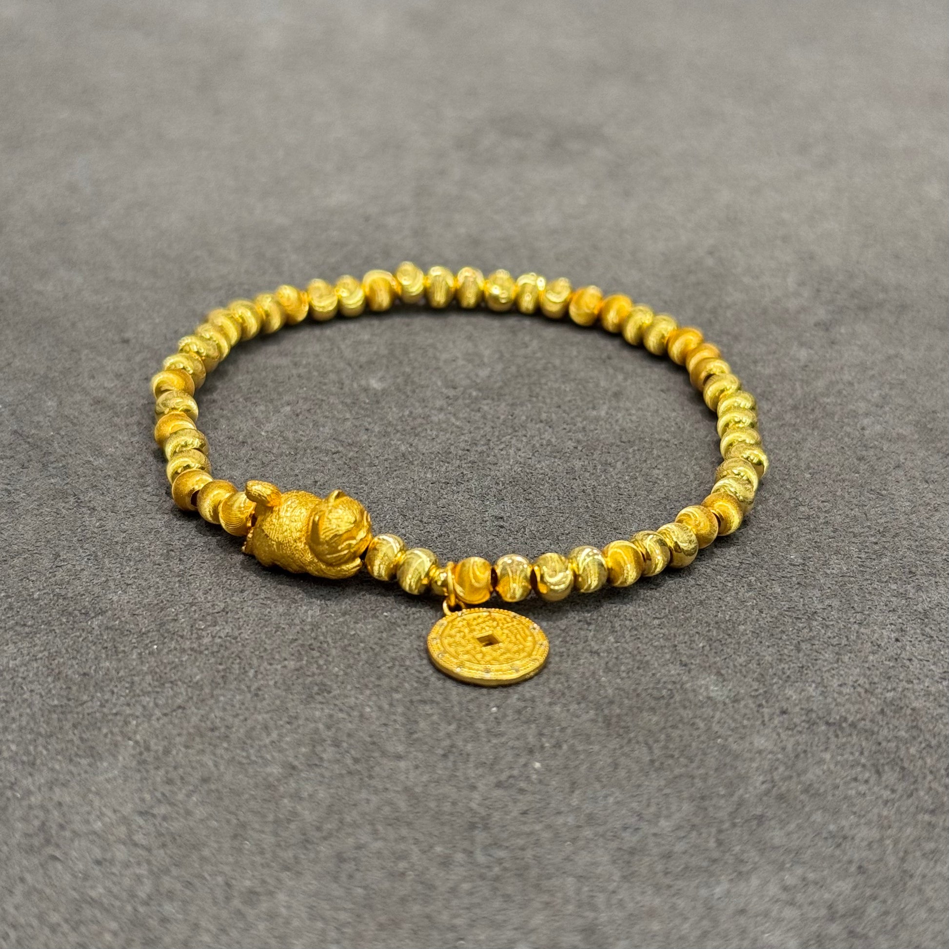 s999 Lucky Cat Coin Charm Gold-Plated Silver Bracelet