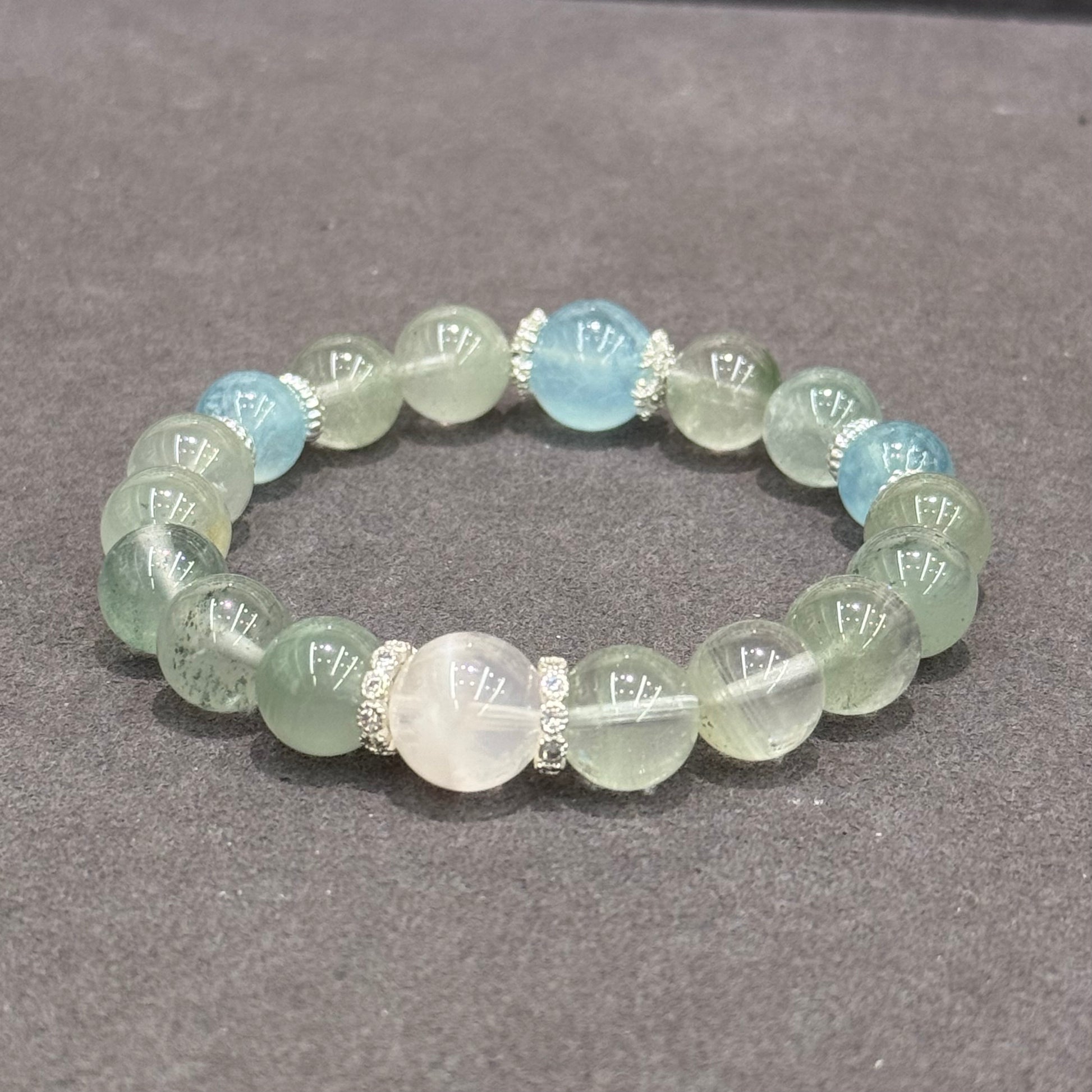 Bracelet Material: Green Phantom Quartz, Aquamarine, Snow Phantom Quartz